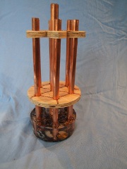 Ton Eijkenboom, mijn echtgenoot, juist gestopt met jarenlange coaching en training van vele goede atletes, een bekende in de atletiekwereld, (de man die door zijn werk in Apeldoorn met een groep topatleten(es) de aanzet gaf voor het grote Omnisportcentrum wat nu gereed is in Apeldoorn!) ging met zijn zeer creatieve handen aan de slag. Met een verfijning en met een gevoel voor de juiste maten en verhoudingen. Het inleggen van koperwerk en verbindingen maken met hout koper enz. en geometrie bij de diverse goed afgewerkte houtcirkels, sterren enz., als een ware kunstenaar. Ikzelf lever de juiste kristallen erbij, die hij vervolgens aanbrengt. Alles in de juiste verhouding.